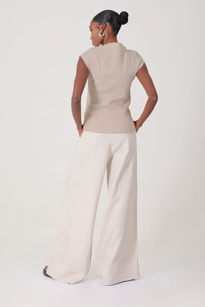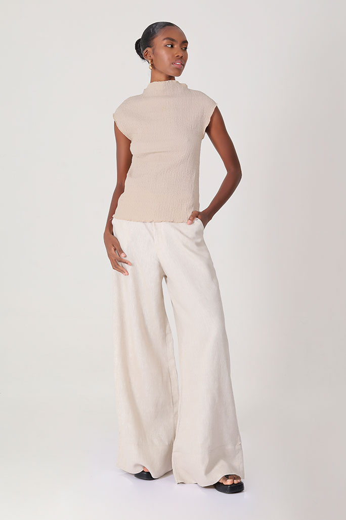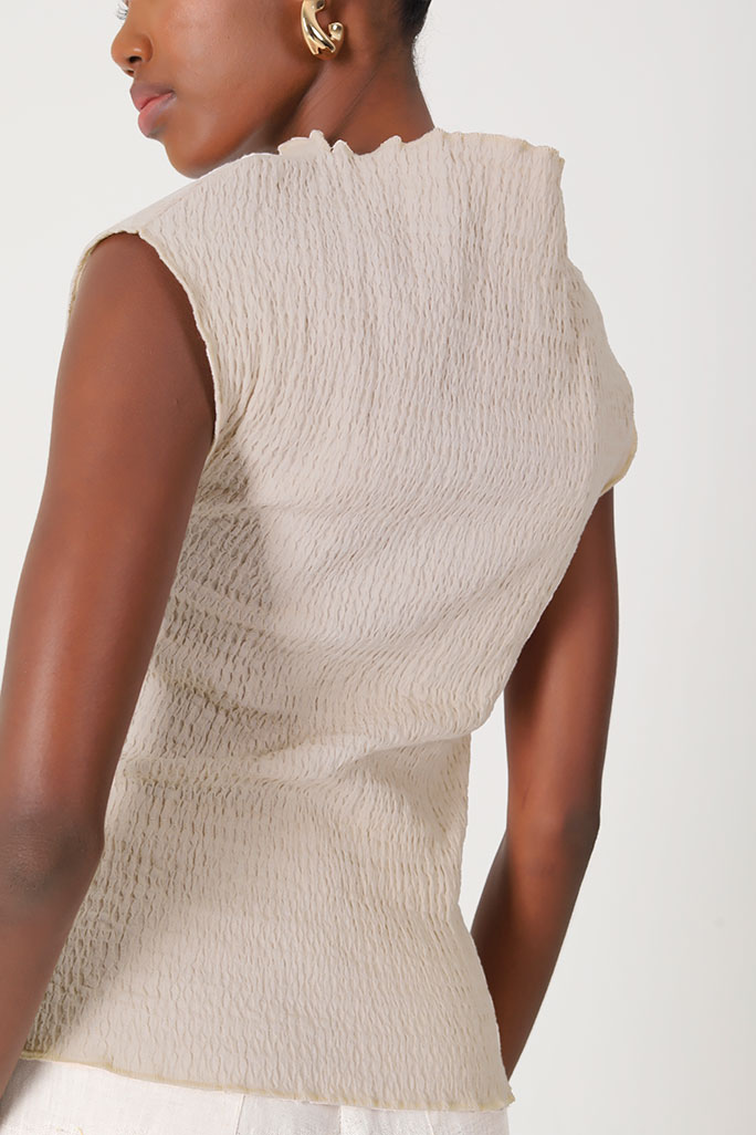Últimamente estamos enamoradas de las siluetas al cuerpo, esas que se ajustan sutilmente sin hacerte sentir incómoda. Para esta blusa encontramos la textura perfecta, haciéndola única, mientras que el símbolo tono a tono en frente la eleva y la conecta con nuestra esencia.