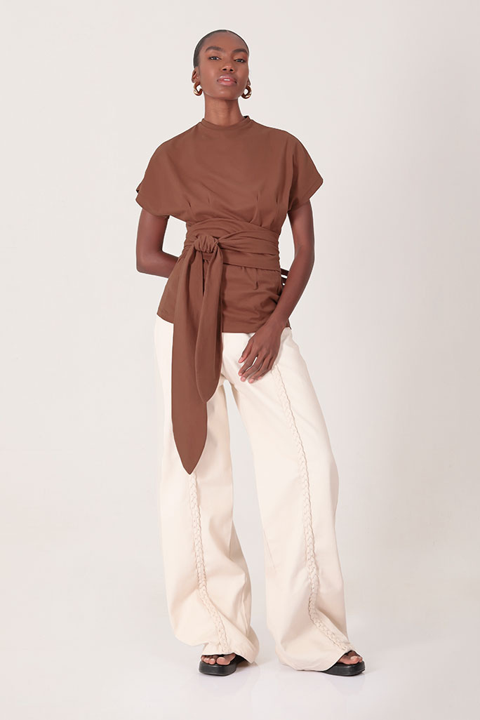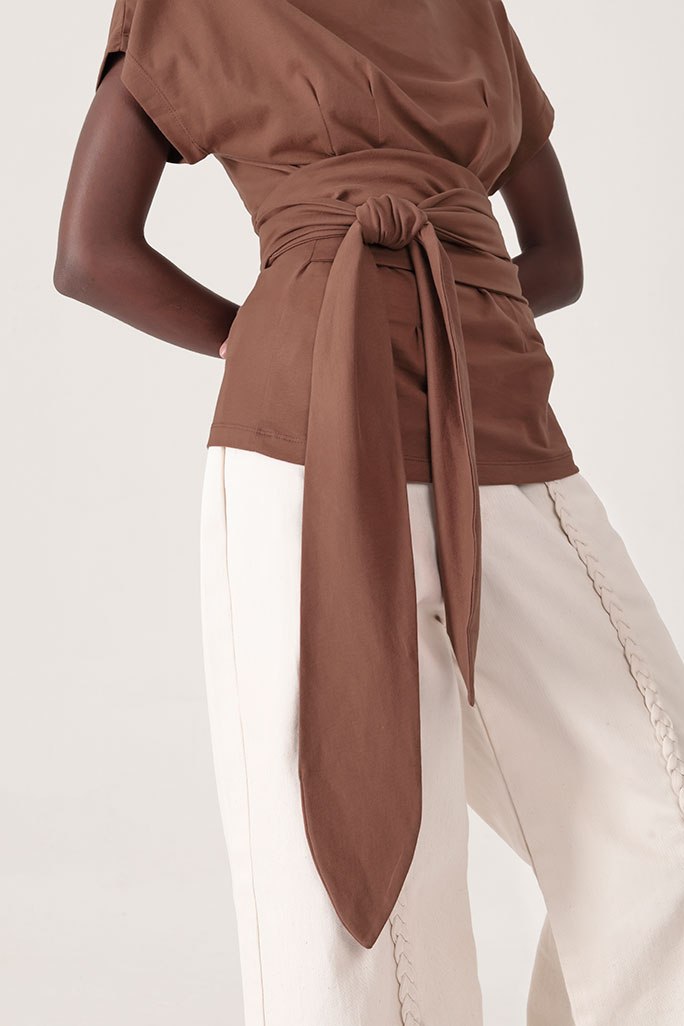 Esta no es una camiseta cualquiera… ¡es LA camiseta! Confeccionada en 100% algodón (súper suave), combina comodidad con diseño gracias a nuestras tiras envolventes icónicas, esas que elevan cualquier look x1000. Elegante, relajada, poderosa y hasta romántica, esta prenda está hecha para acompañarte en sientochenta ocasiones.